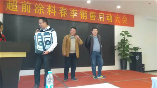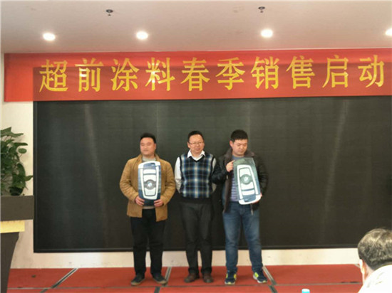 在過去的一年里,超前涂料里的每一位業(yè)務(wù)家人,就像一只只雄鷹,搏擊風(fēng)雨,翱翔蒼穹,創(chuàng)造佳績(jī),跨越了一座座難以逾越的巔峰,在時(shí)間的長(zhǎng)河里留下一個(gè)個(gè)美麗的剪影。在公司閻總的關(guān)心和領(lǐng)導(dǎo)下,在各部門的大力支持下,通過全體業(yè)務(wù)家人的共同努力,公司業(yè)務(wù)規(guī)模獲得了輝煌的發(fā)展。今天,在這啟動(dòng)大會(huì)上閻運(yùn)鋒閻總親自給四位優(yōu)秀業(yè)務(wù)家人送出了四輛寶馬作為獎(jiǎng)勵(lì)。