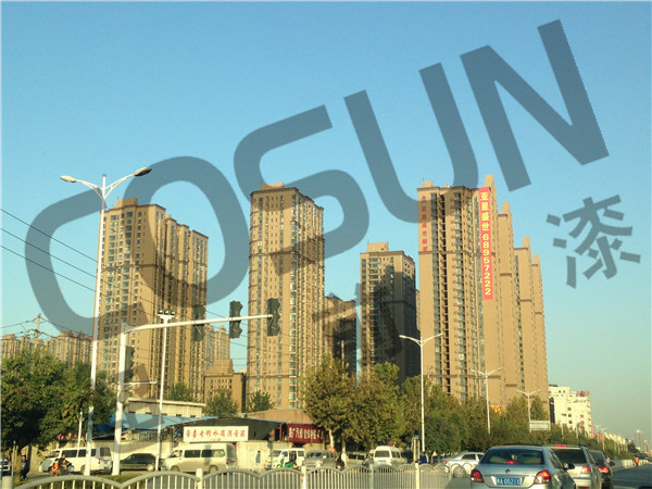 五、 超前漆生產(chǎn)出來的外墻真石漆是采用天然巖石碎粒特制而成、不易裉色、能保持長久的外觀效果,另外還能適應(yīng)各種氣候,能夠保證漆膜不泛白不泛黃,還具有效阻隔水分進入墻體,防止堿性物質(zhì)的析出;完工后的效果莊嚴肅穆,充分能展現(xiàn)出來天然石材的豐富質(zhì)感;